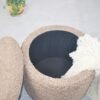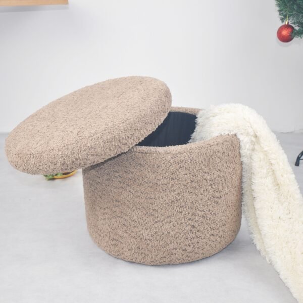 - VERSATILE DESIGN: Round storage ottoman featuring plush beige fabric upholstery and removable lid, perfect for living rooms and bedrooms as both seating and storage