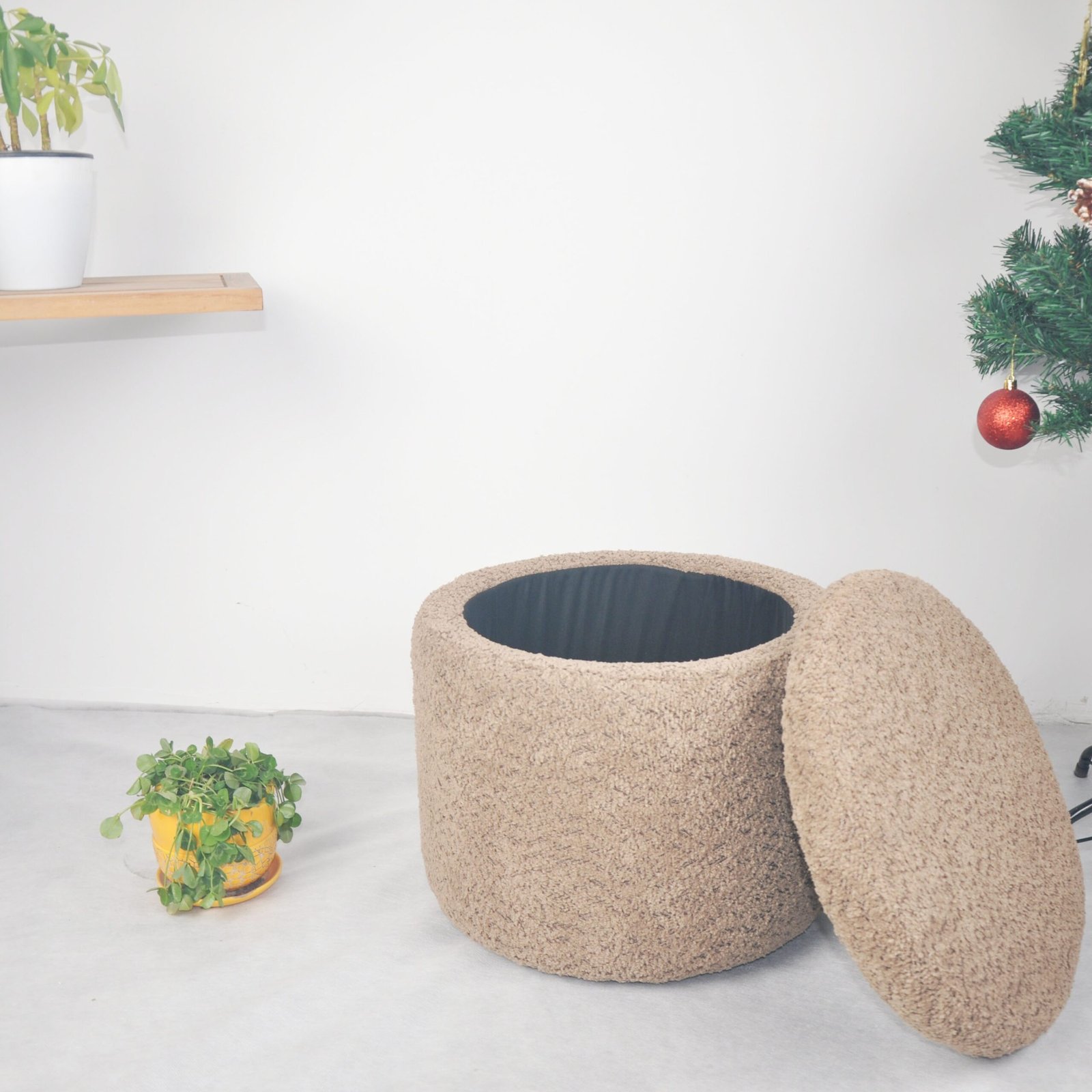 - VERSATILE DESIGN: Round storage ottoman featuring plush beige fabric upholstery and removable lid, perfect for living rooms and bedrooms as both seating and storage
